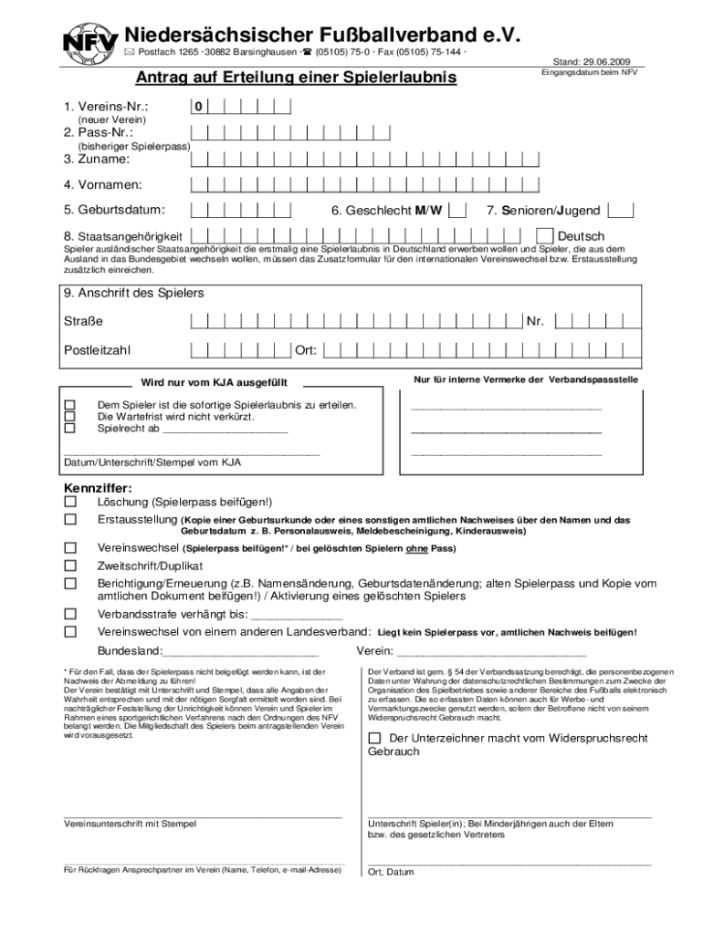 Niederschsischer Fuballverband Ev Postfach is not the form you're looking for?Search for another form here.