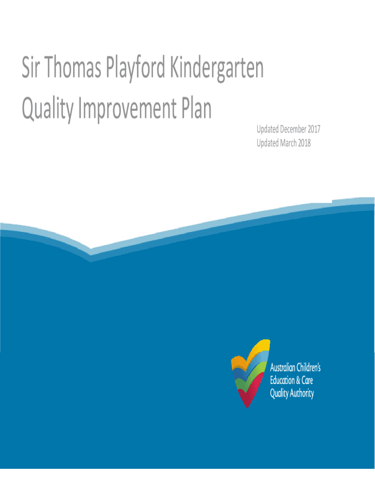 SirThomasPlayfordKindergarten QualityImprovementPlanUpdatedDecember2017 UpdatedMarch2018The National Quality Standard and Quality Improvement The National Quality Standard is the standard against