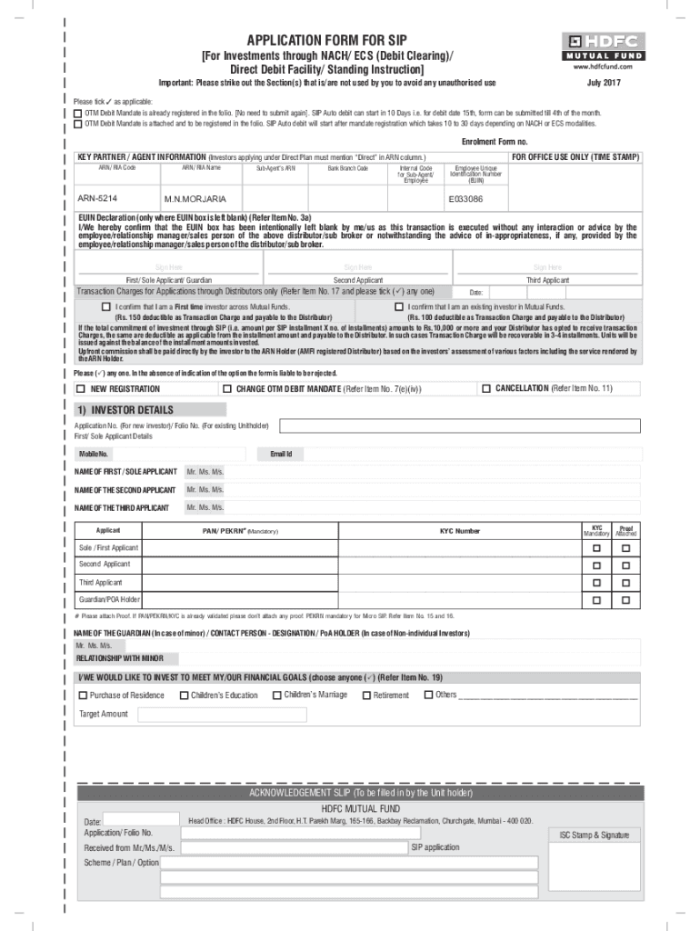 Any individual or entity who wants to invest in mutual funds through a systematic investment plan is required to file an application form for SIP.