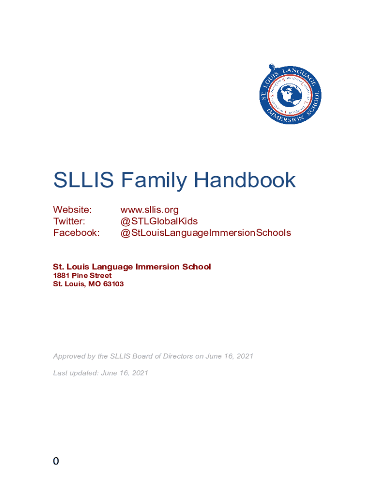 ELLIS Family Handbook Website: Twitter: Facebook:www.sllis.org @STLGlobalKids @StLouisLanguageImmersionSchoolsSt. Louis Language Immersion School 1881 Pine Street St. Louis, MO 63103Approved by the