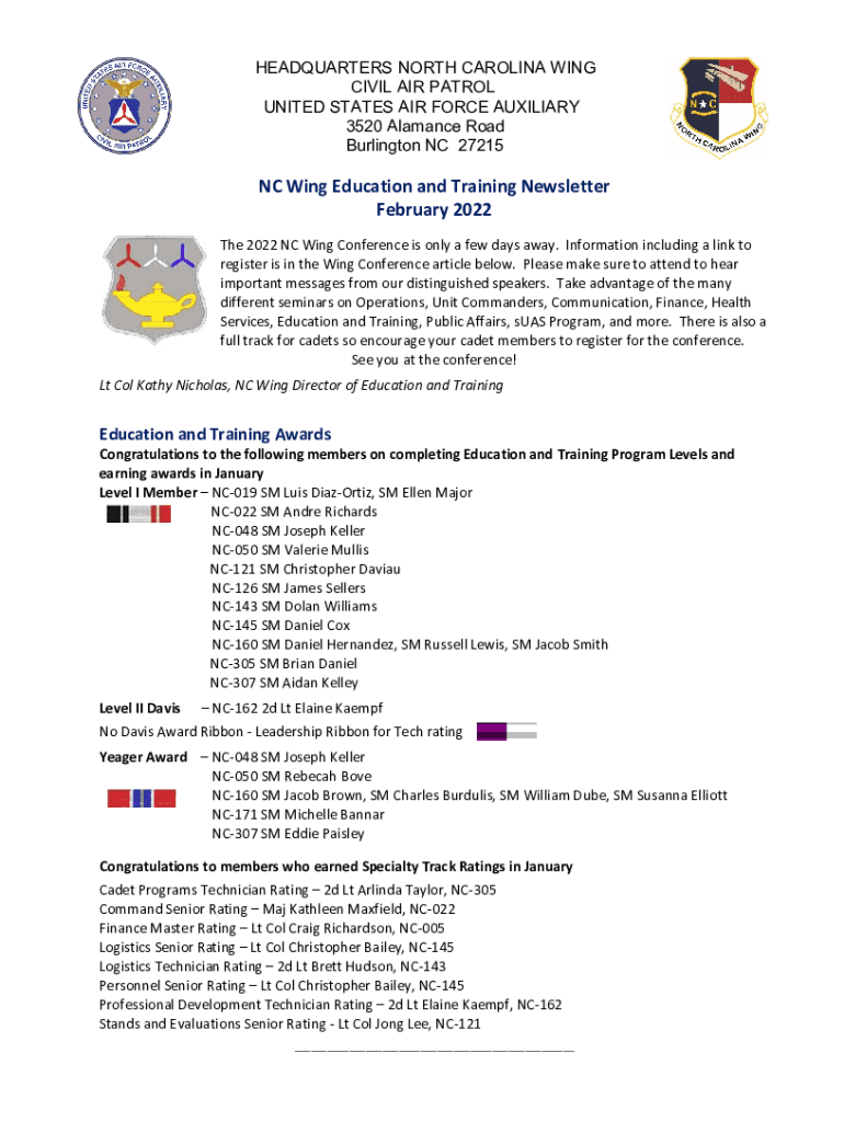 Get the free NC Wing Education and Training Newsletter February 2022 - ncwg cap