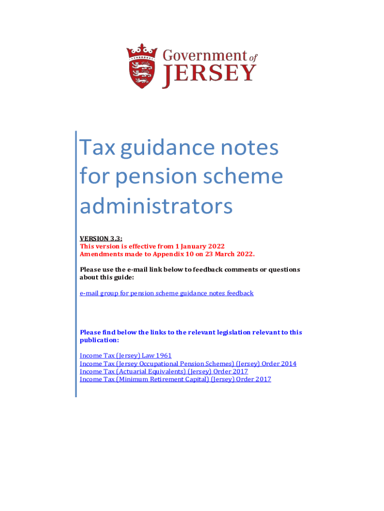 Tax guidance notes for pension scheme administrators VERSION 3.3: This version is effective from 1 January 2023 Amendments made to Appendix 10 on 23 March 2023. Please use the email link below to