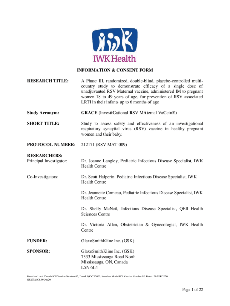 INFORMATION & CONSENT FORM RESEARCH TITLE:A Phase III, randomized, double-blind, placebo controlled multi country study to demonstrate efficacy of a single dose of unadjusted RSV Maternal vaccine,