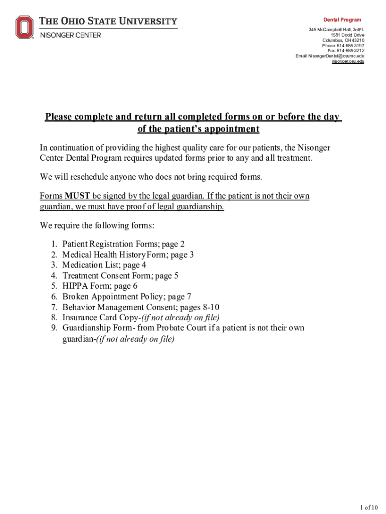 Dental Program 345 Campbell Hall, 3rdFL 1581 Dodd Drive Columbus, OH 43210 Phone: 6146853197 Fax: 6146853212 Email: NisongerDental@osumc.edu longer.OSU.please complete and return all completed forms