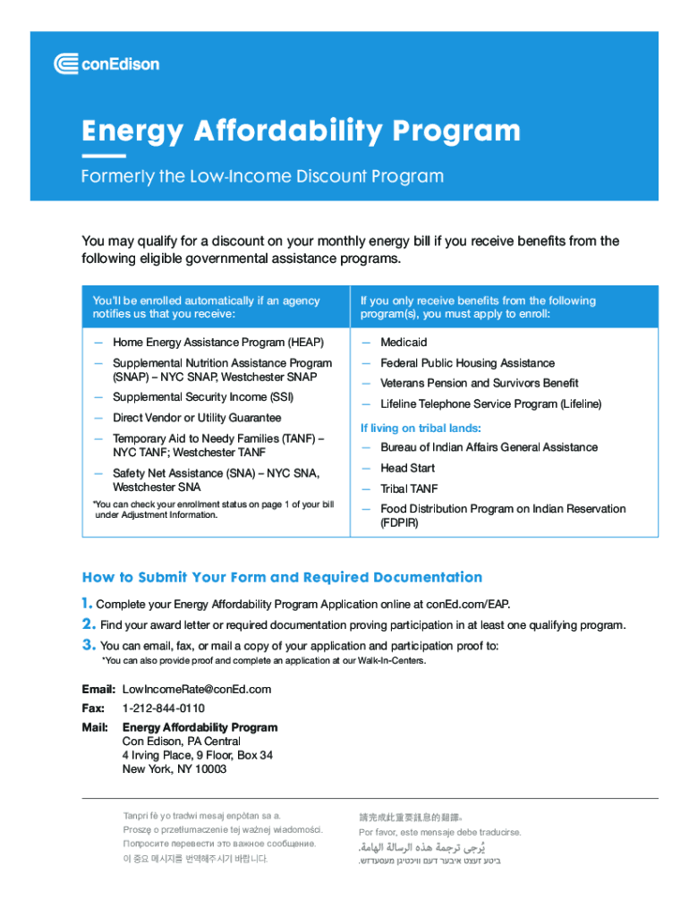 Get the free Energy Affordability & Electric and Gas Bill Relief Program