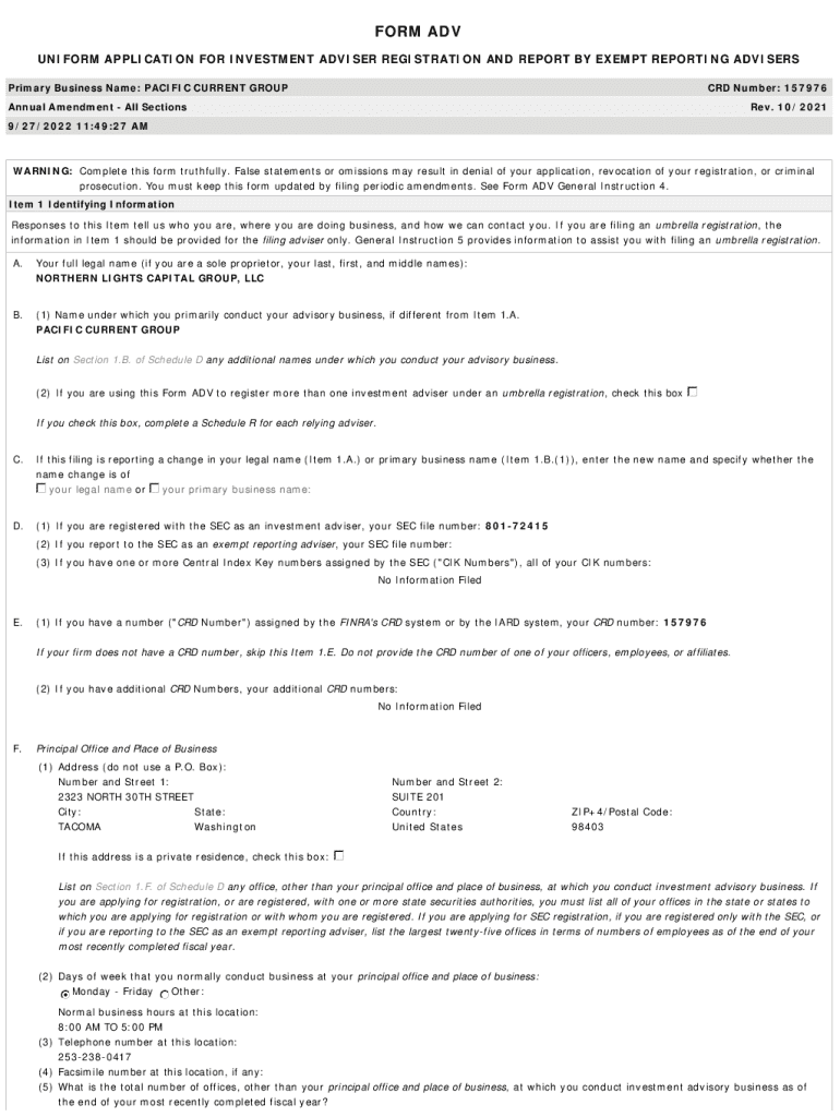 FORM ADV UNIFORM APPLICATION FOR INVESTMENT ADVISER REGISTRATION AND REPORT BY EXEMPT REPORTING ADVISERS Primary Business Name: PACIFIC CURRENT GROUP CRD Number: 157976Annual Amendment All Sections