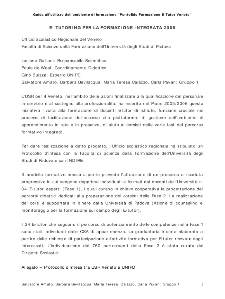 Good allutilizzo dellambiente DI formation Punted Formation Tutor Veneto TUTORING PER LA FORMATION INTEGRATE 2006