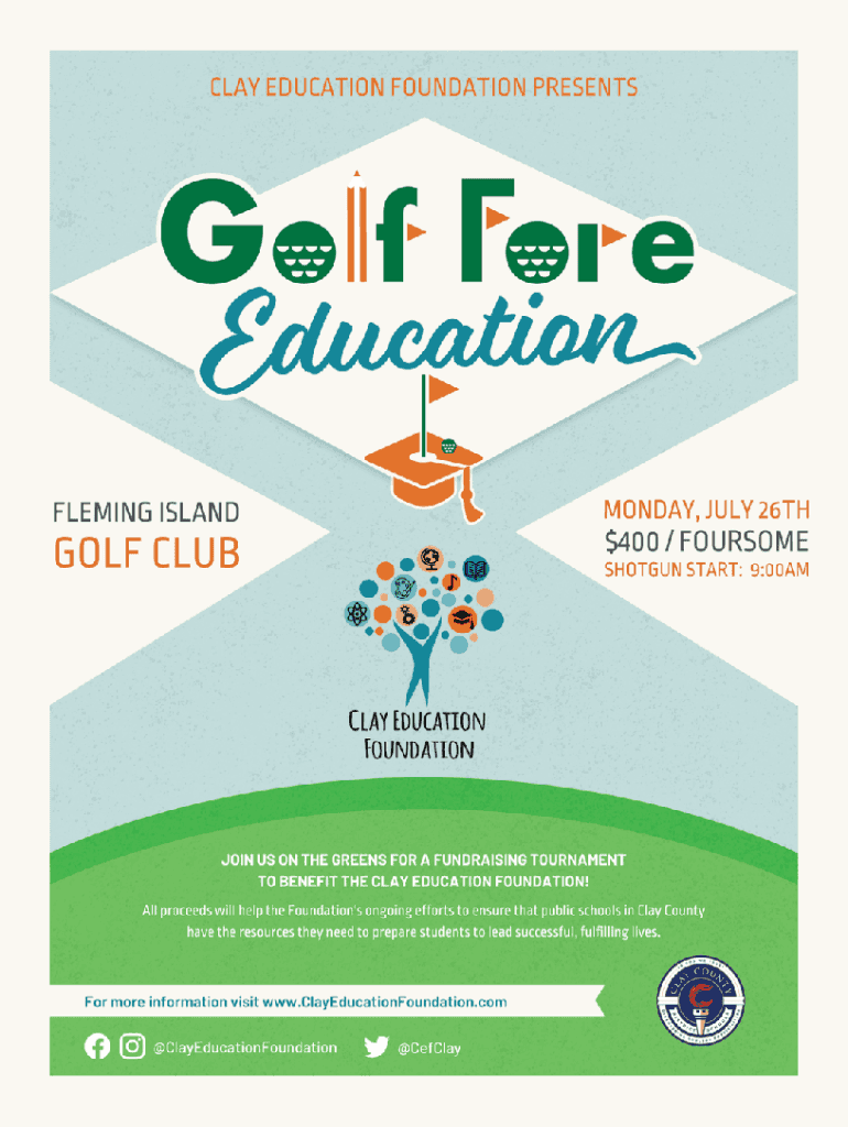INVITATION The Clay Education Foundation is pleased to announce the 1st Annual Golf Fore Education event. The event will be held at the beautiful Fleming Island Golf Club with breakfast and lunch