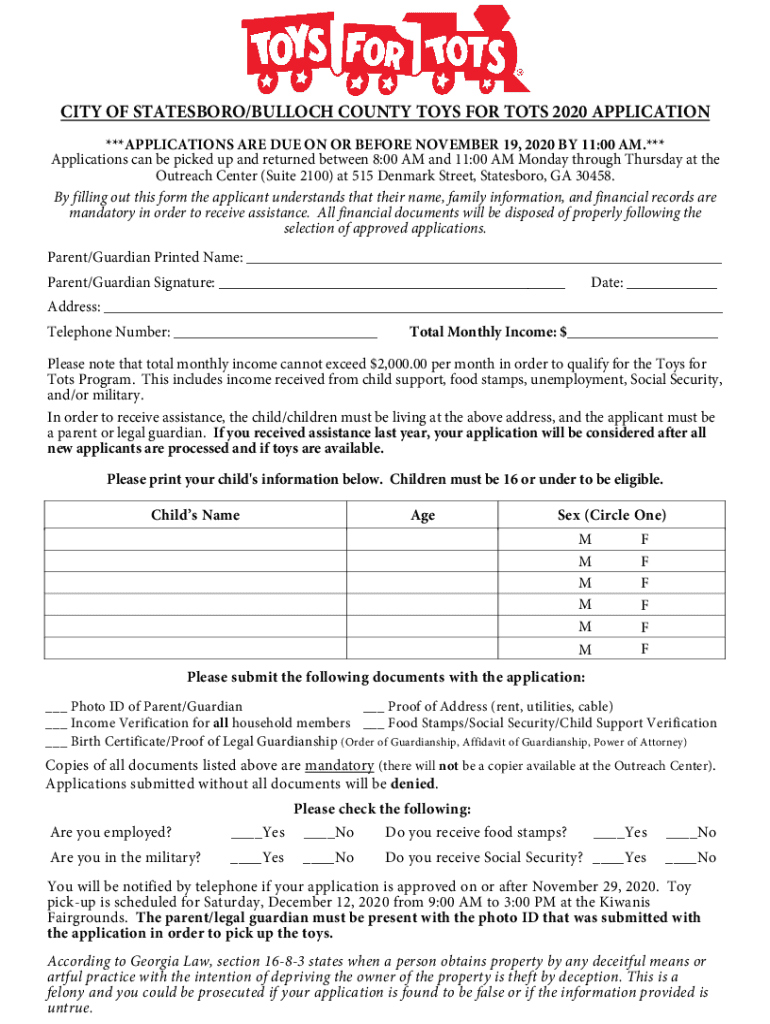Get the free 2020-Toys-for-Tots-Application..pdf - Statesboro Jaycees