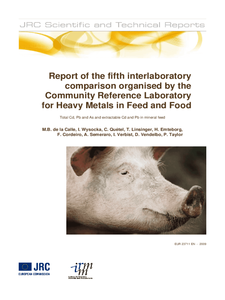 Report of the fifth interlaboratory comparison organized by the Community Reference Laboratory for Heavy Metals in Feed and Food Total Cd, Pb and As and extractable Cd and Pb in mineral feed. B. DE