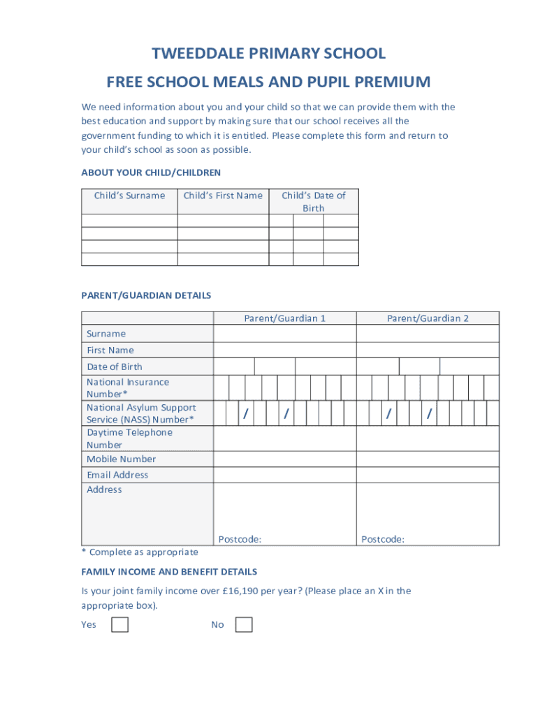 TEESDALE PRIMARY SCHOOL FREE SCHOOL MEALS AND PUPIL PREMIUM We need information about you and your child so that we can provide them with the best education and support by making sure that our school