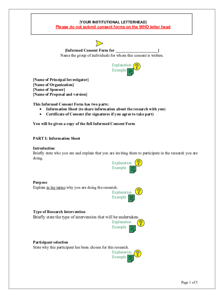 [YOUR INSTITUTIONAL LETTERHEAD]Please do not submit consent forms on the WHO letter head [Name of Principal Investigator][Informed Consent Form for ___] Name the group of individuals for whom this