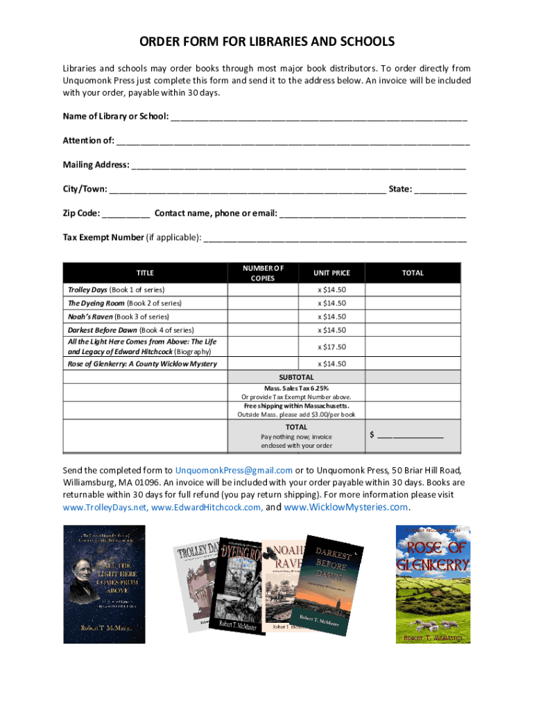 ORDER FORM FOR LIBRARIES AND SCHOOLS Libraries and schools may order books through most major book distributors. To order directly from Unquoting Press just complete this form and send it to the address