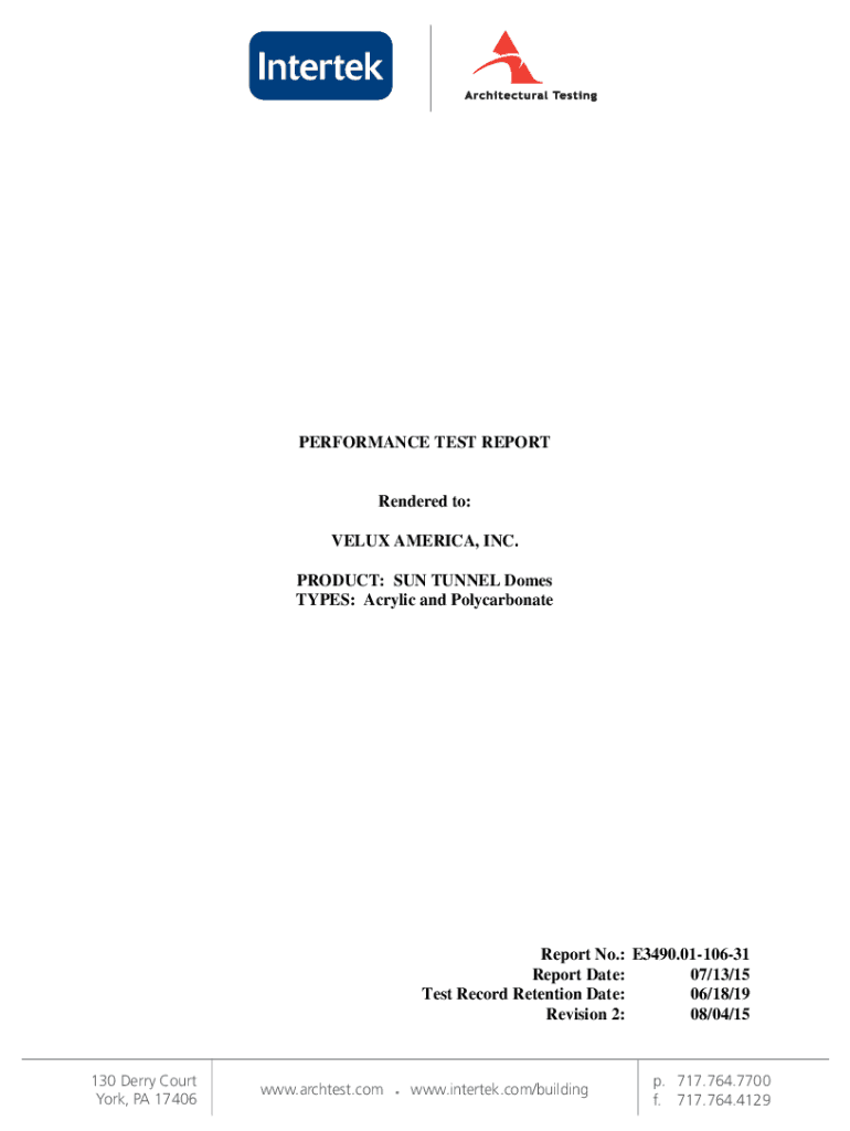 TYPES: Acrylic and PolycarbonateReport No.: E3490.0110631