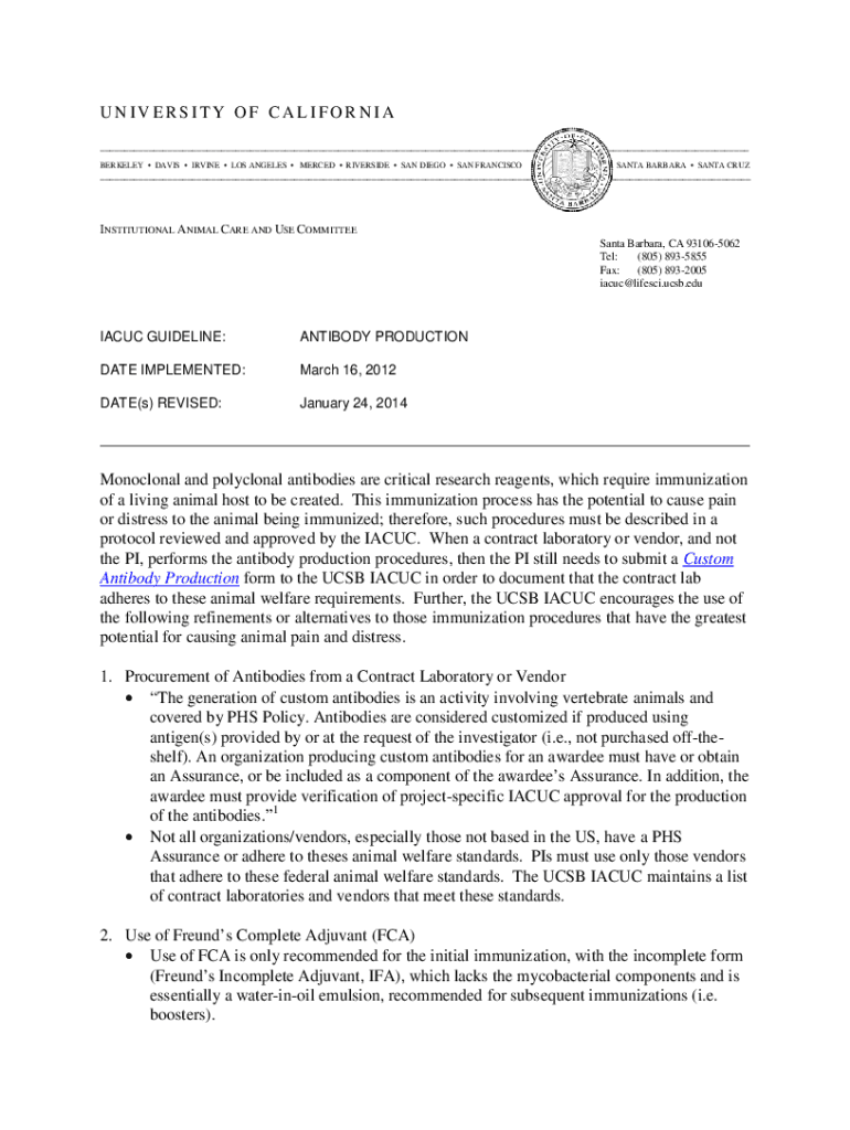 UNIVERSITY OF CALIFORNIA ___ BERKELEY DAVIS IRVINE LOS ANGELES MERCED RIVERSIDE SAN DIEGO SAN FRANCISCO______ SANTA BARBARA SANTA CRUZ___INSTITUTIONAL ANIMAL CARE AND USE COMMITTEE Santa Barbara,