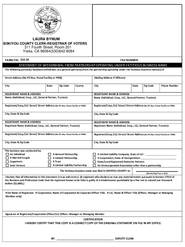 FILIGREE: $14.50FILENUMBER:STATEMENTOFWITHDRAWALFROMPARTNERSHIPOPERATINGUNDERFICTITIOUSBUSINESSNAME