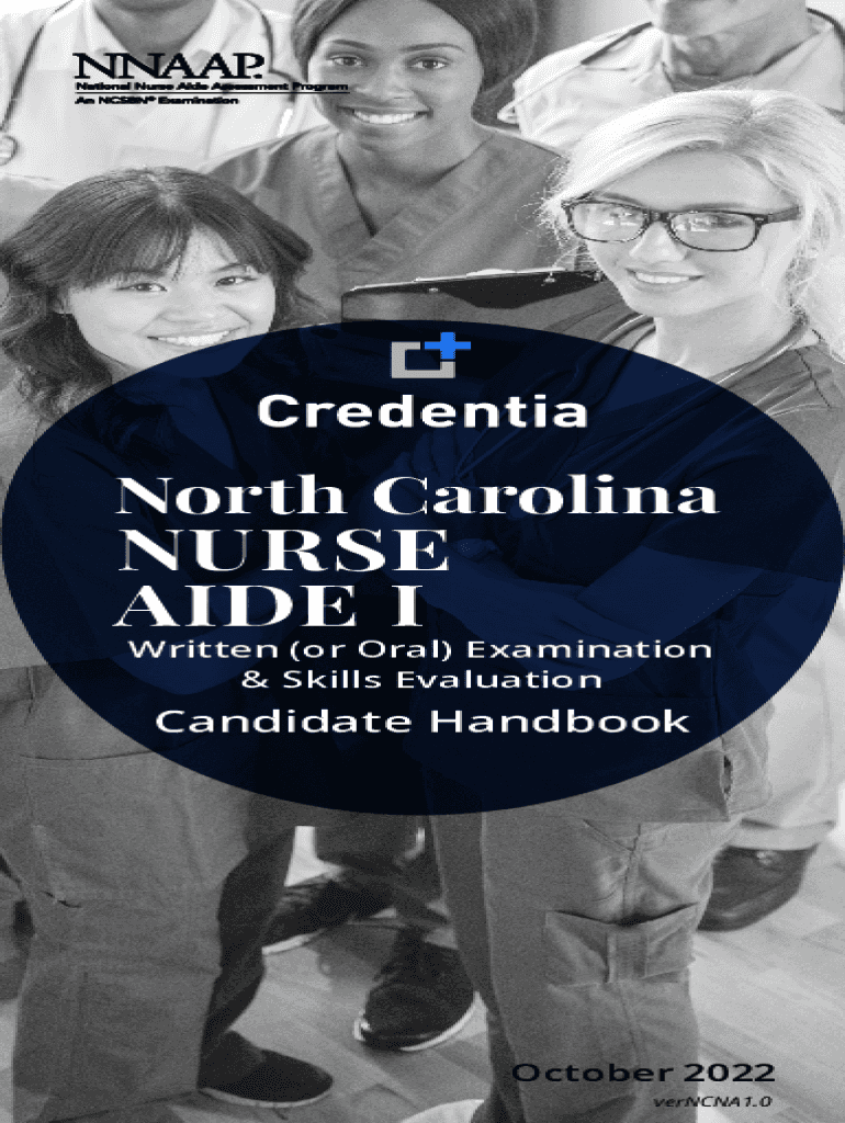 North CarolinaNURSE AIDE Written (or Oral) Examination & Skills EvaluationCandidate Handbook October 2022 verNCNA1.0QUICK REFERENCE CREDENTIAL EXAMINATION AND SCHEDULING SERVICES North Carolina NCAA