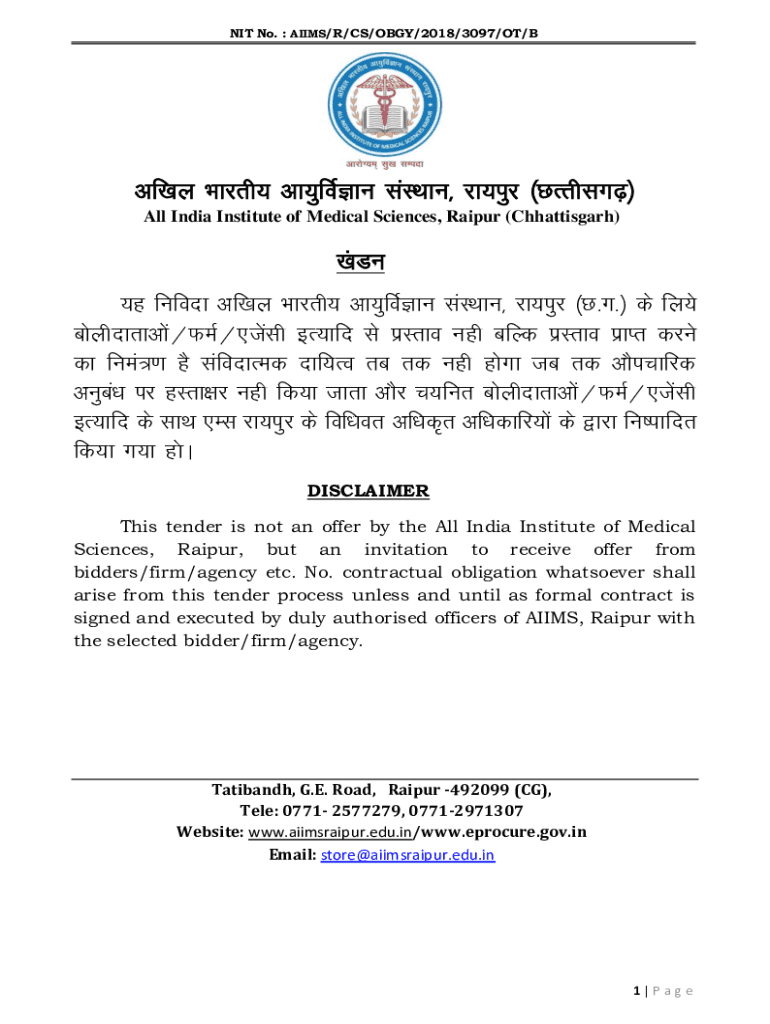 Get the free ;g fufonk vfky Hkkjrh; vk;qfoZKku laLFkku jk;iqj N-x- ds fy;s