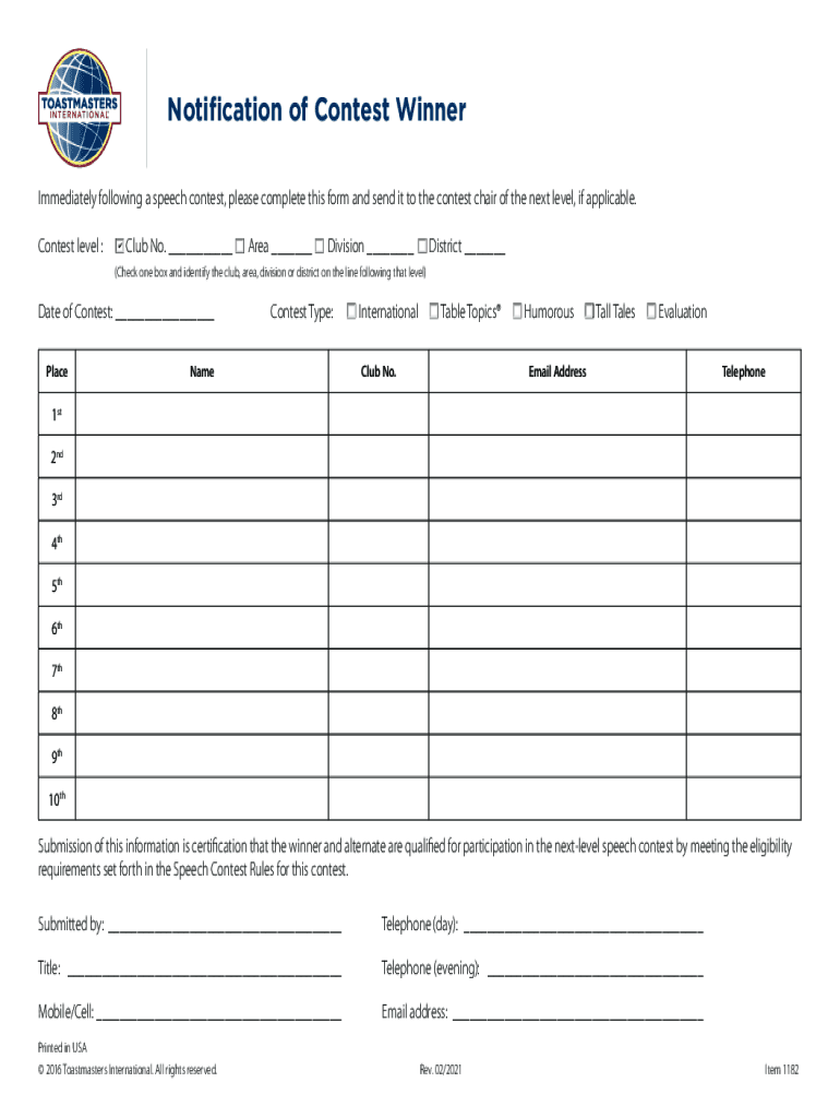 Get the free Notification Of Winners Toastmasters - Fill Online, Printable ...
