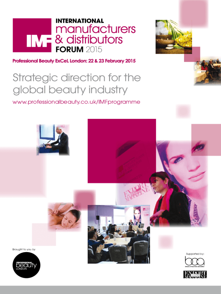2015Strategic direction for the global beauty industry www.professionalbeauty.co.uk/IMFprogrammeBrought to you by Supported by:A notforprofit organizations your key beauty supplier a BCA member? These