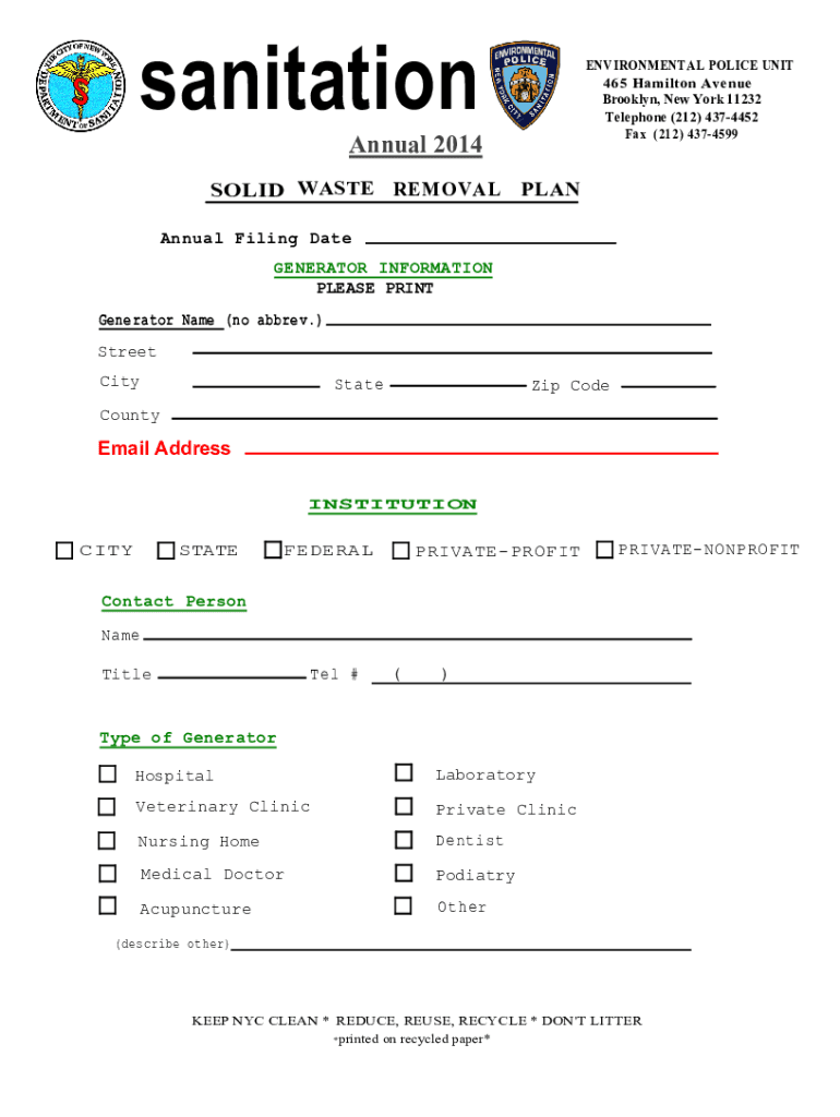 SOLID WASTE REMOVALPLANAnnual Filing Date