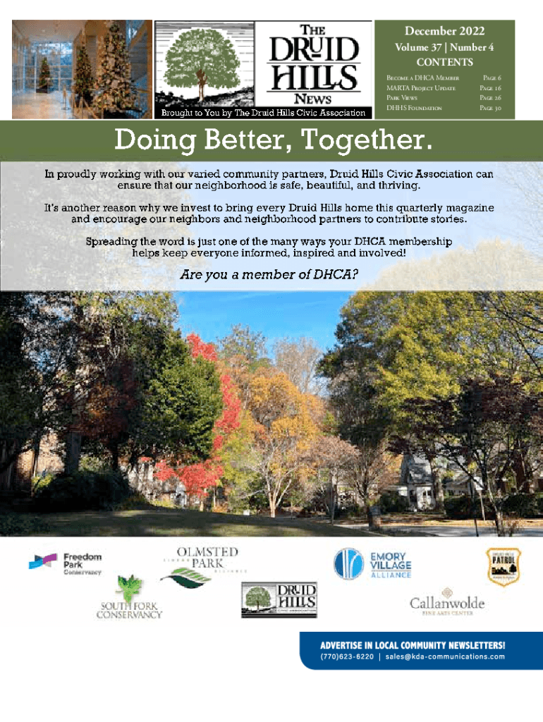 December 2022 Volume 37 | Number 4 CONTENTSBrought to You by The Druid Hills Civic AssociationBecome a DMCA MemberMARTA Project Update Park ViewsDHHS Foundation Page 6-Page 16-Page 26 Page 30Doing