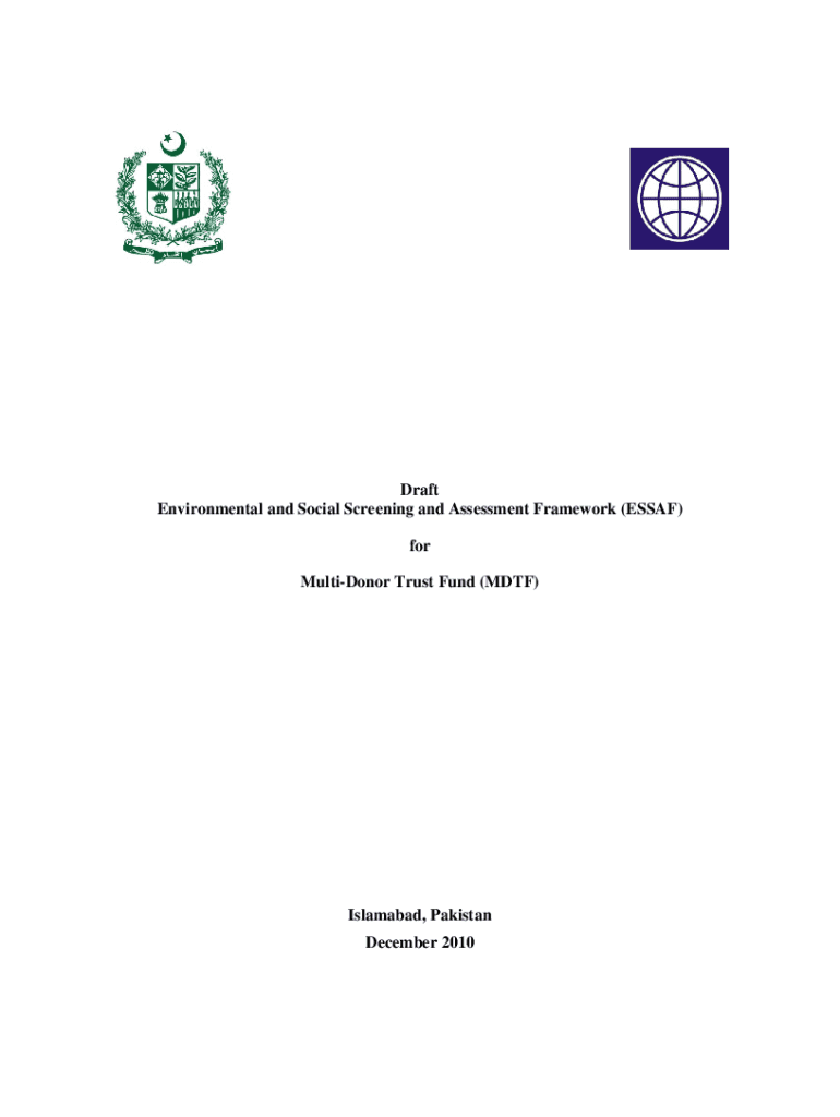 Draft Environmental and Social Screening and Assessment Framework (ESSAY) for Multicolor Trust Fund (MDF)Islamabad, Pakistan December 2010Contents List of Acronyms ............................................................................................