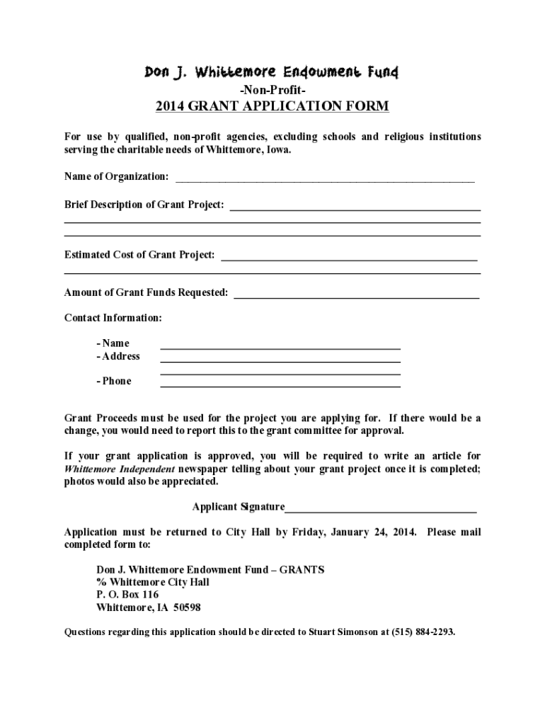 Get the free Don J. Whittemore Endowment Fund Grant Application.doc