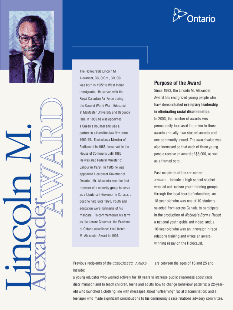 Get the free Lincoln AlexanderCanada, Contributions, Day, & Known For