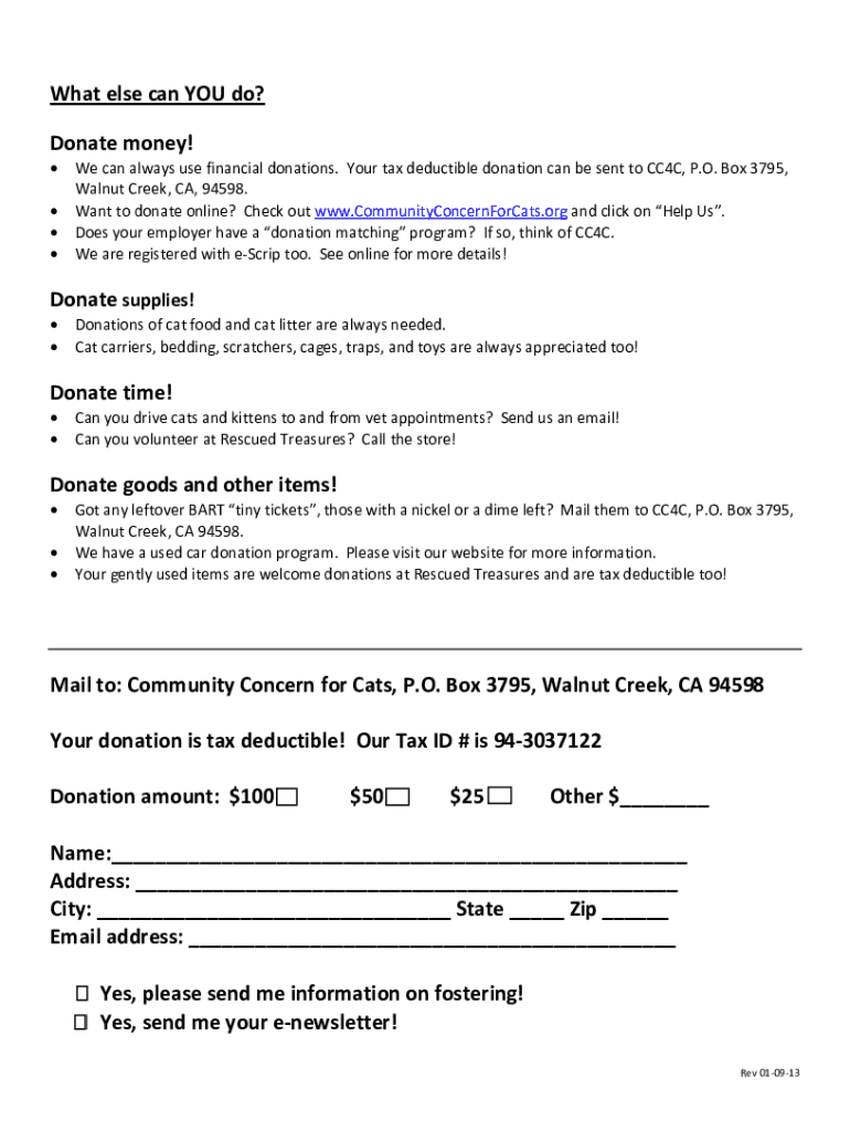 P.O. Box3795×Walnut Creek,CA94598*(925)938CATS