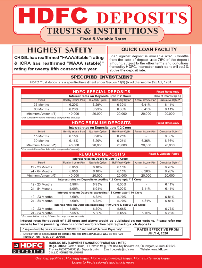 Fixed & Variable RatesHIGHEST SAFETYQUICK LOAN FACILITYCRISIL has reaffirmed \” AAA/Stable\” rating