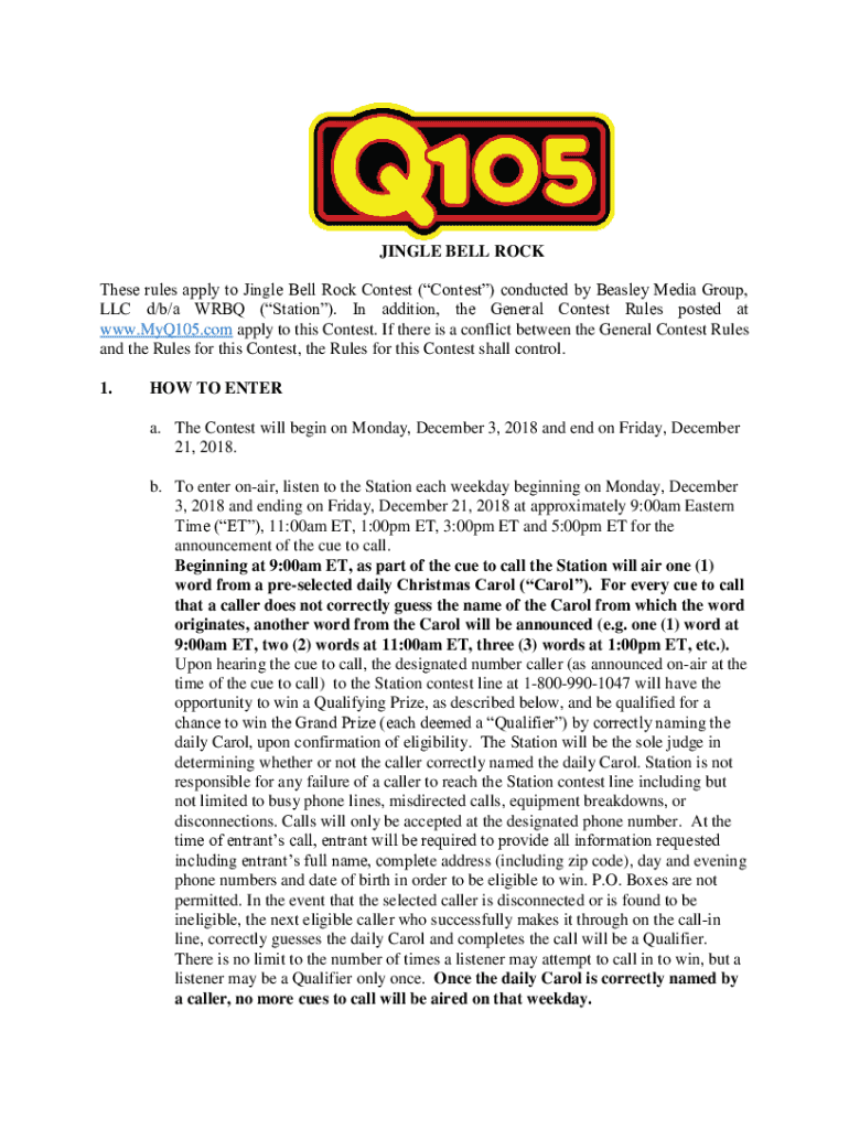 JINGLE BELL ROCK These rules apply to Jingle Bell Rock Contest (Contest) conducted by Beasley Media Group, LLC d/b/a WEB (Station). In addition, the General Contest Rules posted at www.MyQ105.com