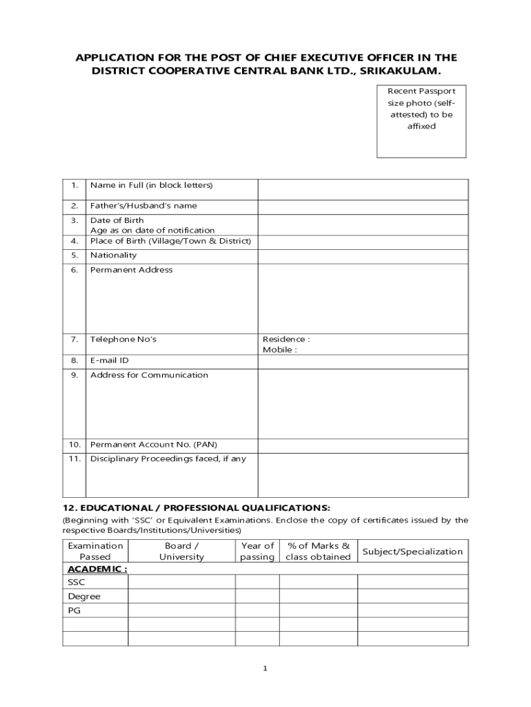 APPLICATION FOR THE POST OF CHIEF EXECUTIVE OFFICER IN THE