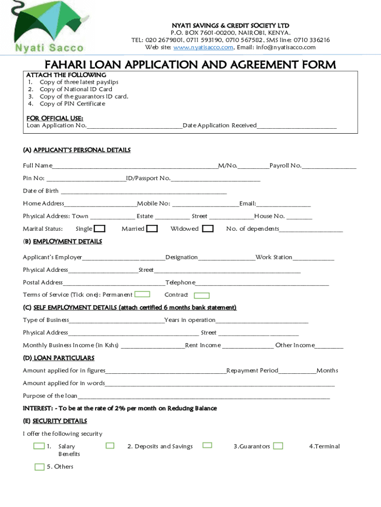 NY ATI SAVINGS & CREDIT SOCIETY LTD P.O. BOX 760100200, NAIROBI, KENYA. TEL: 020 2679801, 0711 593190, 0710 567582, SMS line: 0710 336216 Website: www.nyatisacco.com, Email: info@nyatisacco.comFAHARI