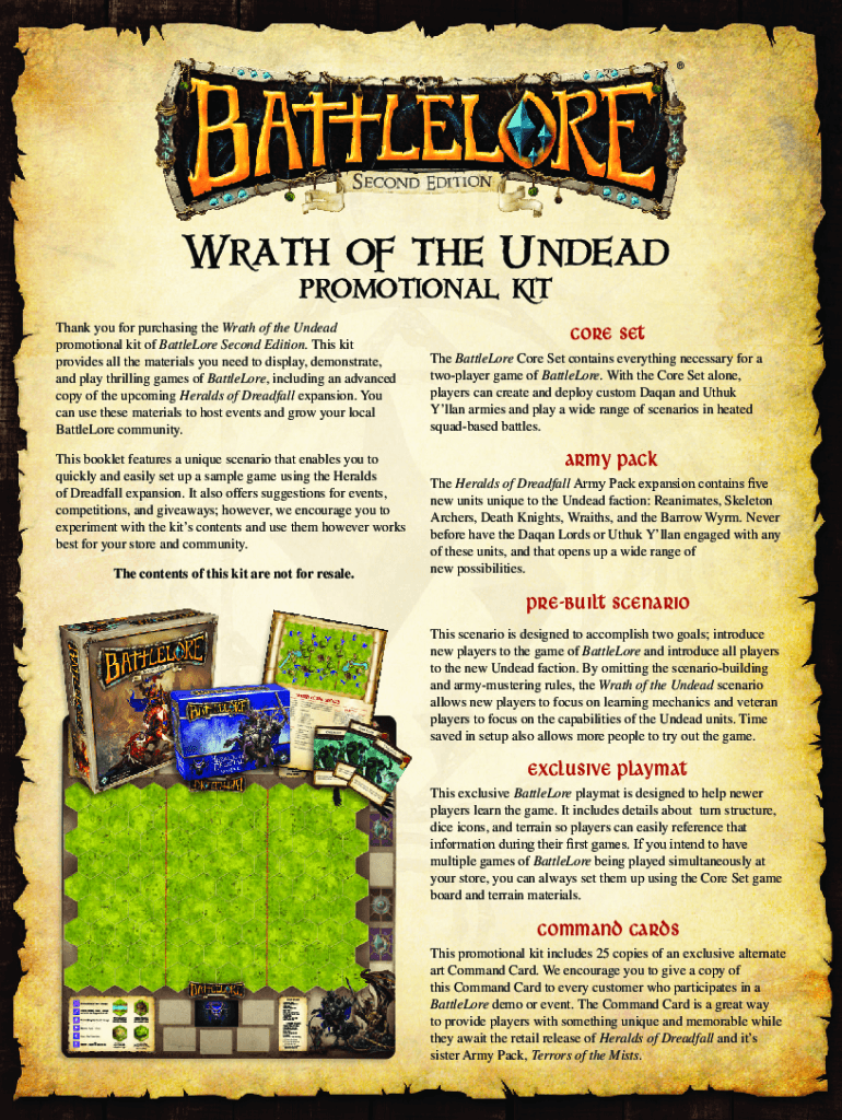 Wrath of the Undead promotional kitchen you for purchasing the Wrath of the Undead promotional kit of Battledore Second Edition. This kit provides all the materials you need to display, demonstrate,