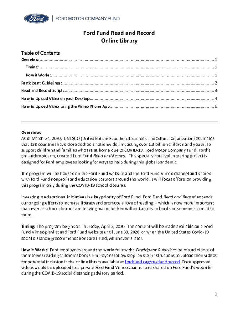 Ford Fund Read and Record Online Library Table of Contents Overview: ............................................................................................................................................