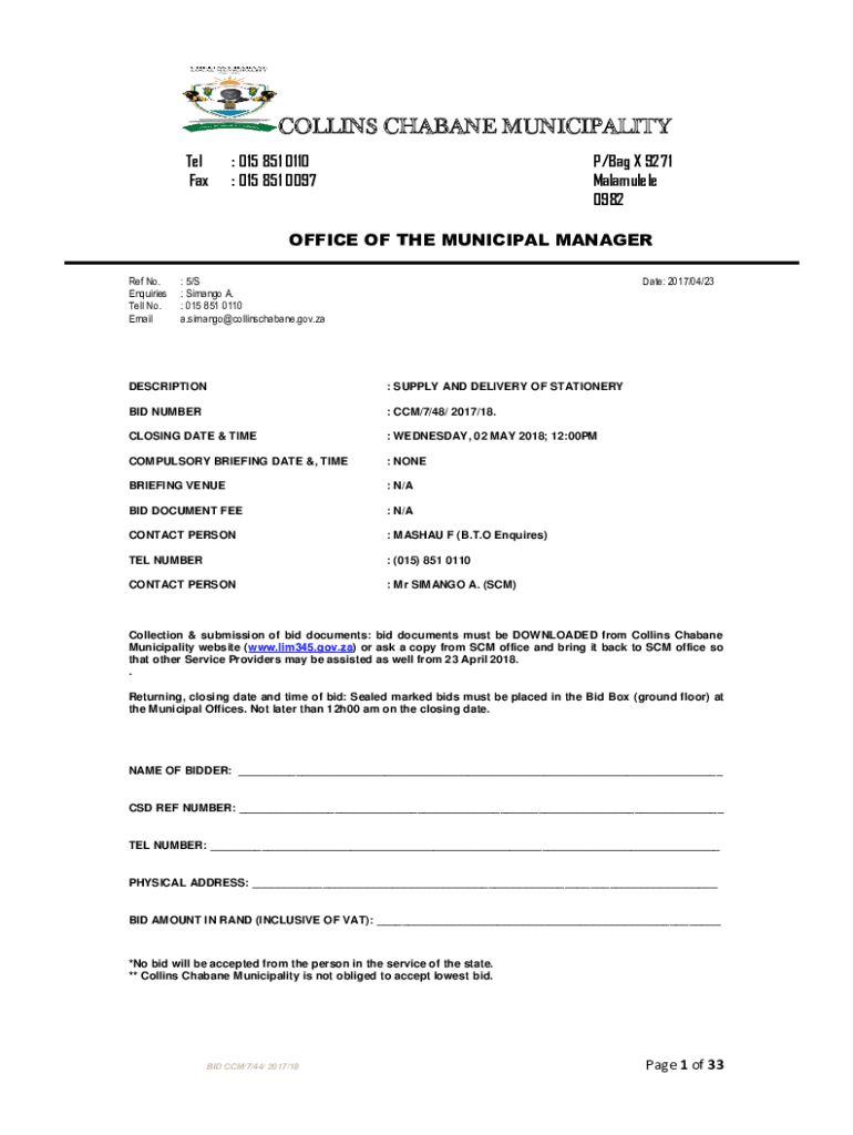 Submit the completed form to the appropriate department or office of Collins Chabane Local Municipality.