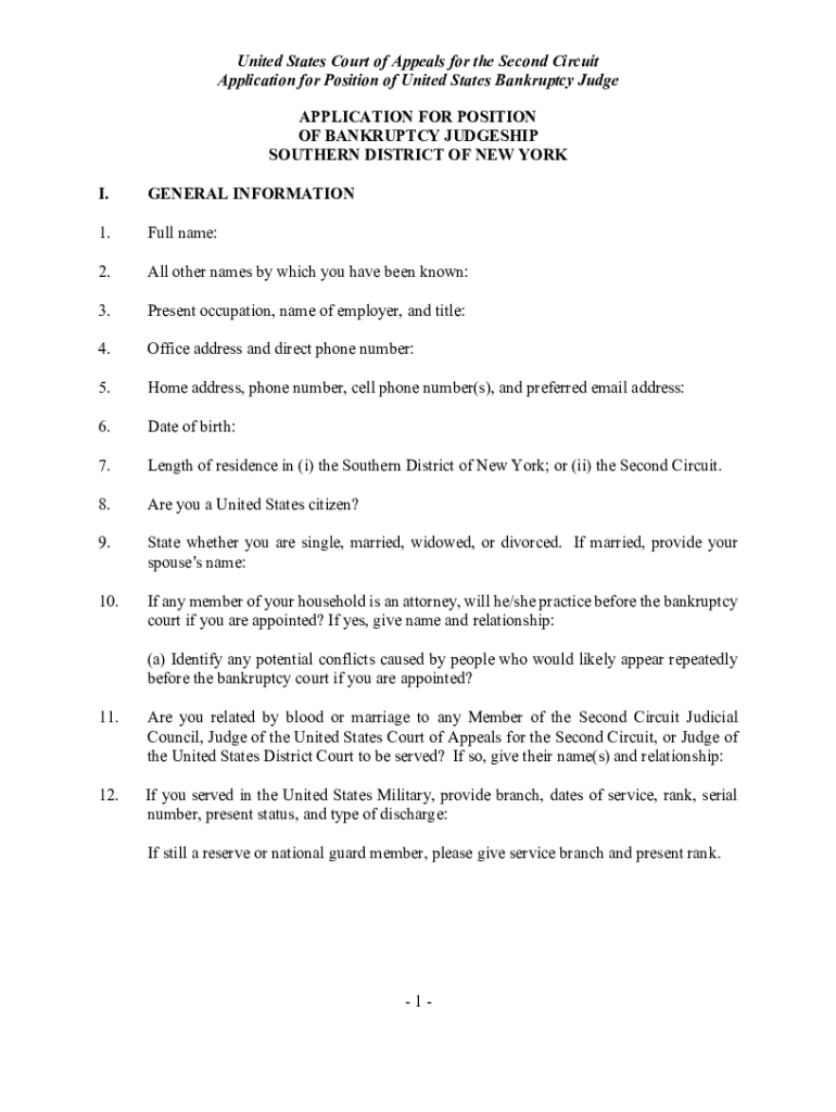 United States Court of Appeals for the Second Circuit Application for Position of United States Bankruptcy Judge APPLICATION FOR POSITION OF BANKRUPTCY JUDGESHIP SOUTHERN DISTRICT OF NEW YORK I.GENERAL