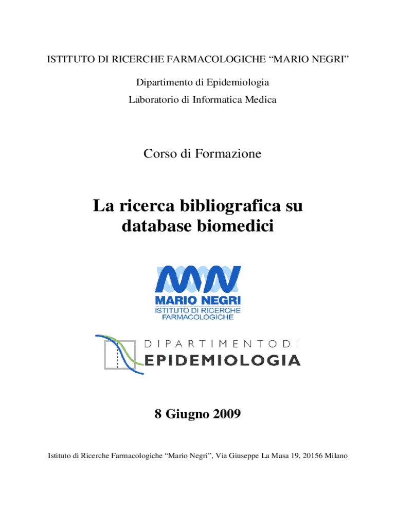 Get the free La ricerca bibliografica su database biomedici - Dors