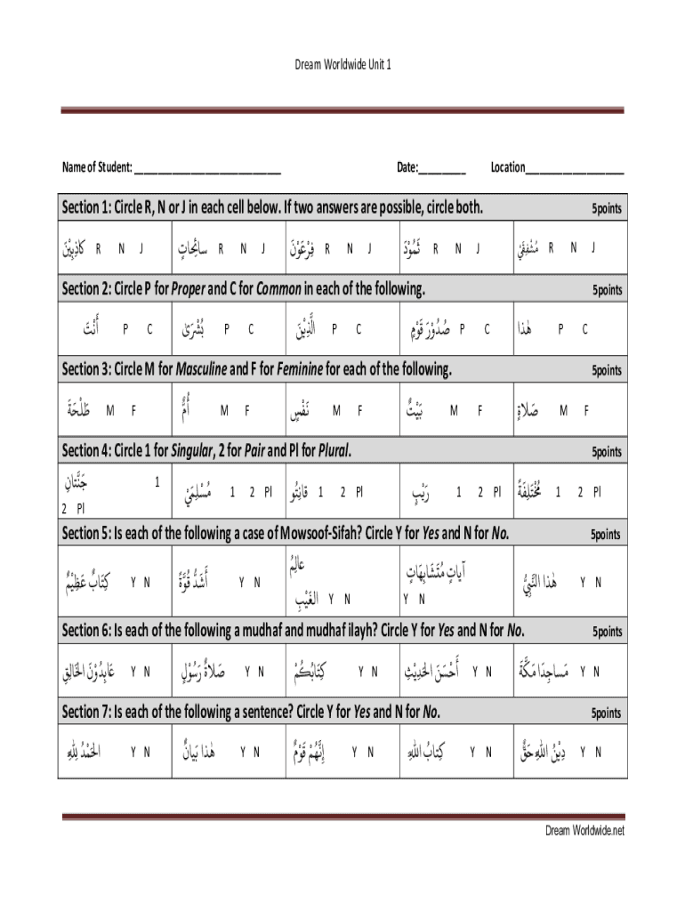 Dream Worldwide Unit 1Name of Student: ___Date:___Location___Section 1: Circle R, N or J in each cell below. If two answers are possible, circle both. R N J R N J R N J R N J Section 2: Circle P for