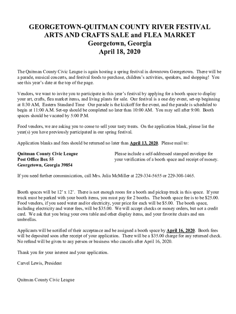 Get the free Georgetown Quitman County River Festival Arts and Crafts ...