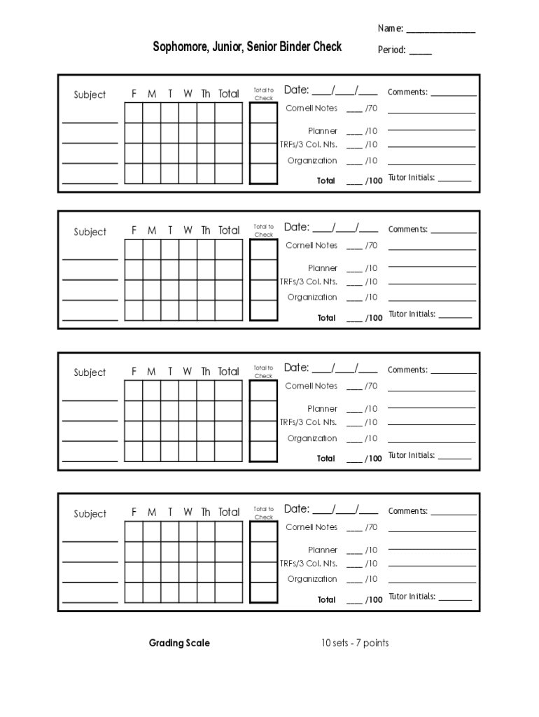 Checkmate: ___/___/___Comments: ___Cornell Notes___ /70___Planner___ /10___TFS/3 Col. NTS.___ /10___Organization___