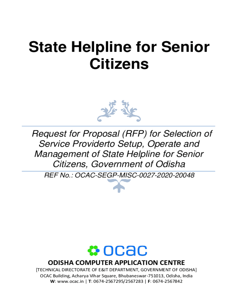 State Helpline for Senior CitizensRequest for Proposal (RFP) for Selection of Service Provider to Set up, Operate and Management of State Helpline for Senior Citizens, Government of Odisha REF No.: