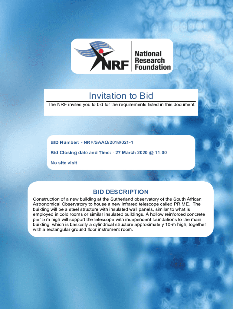 Get the free NRF Bid invitation - NRFSAAO2018021 Prime Building -2