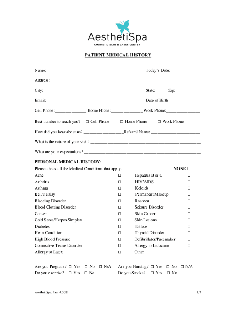 Get the free New Patient Medical History - AesthetiSpa