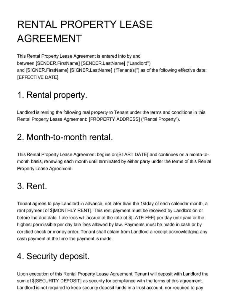 RENTAL PROPERTY LEASE AGREEMENT This Rental Property Lease Agreement is entered into by and between [SENDER. Filename] [SENDER. Hostname] (Landlord) and [SIGNER. Filename] [SIGNER. Hostname] (Tenant(s))