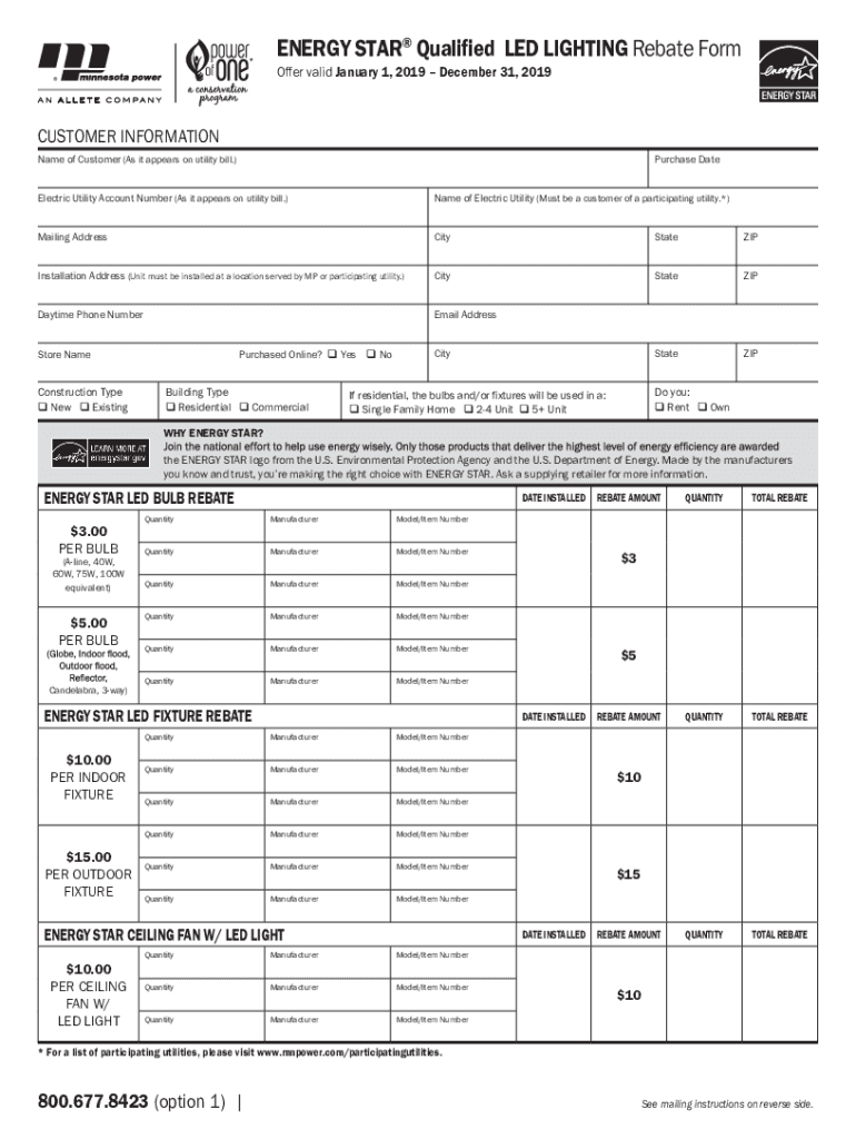 Get the free ENERGY STAR Qualified LED LIGHTING Rebate Form