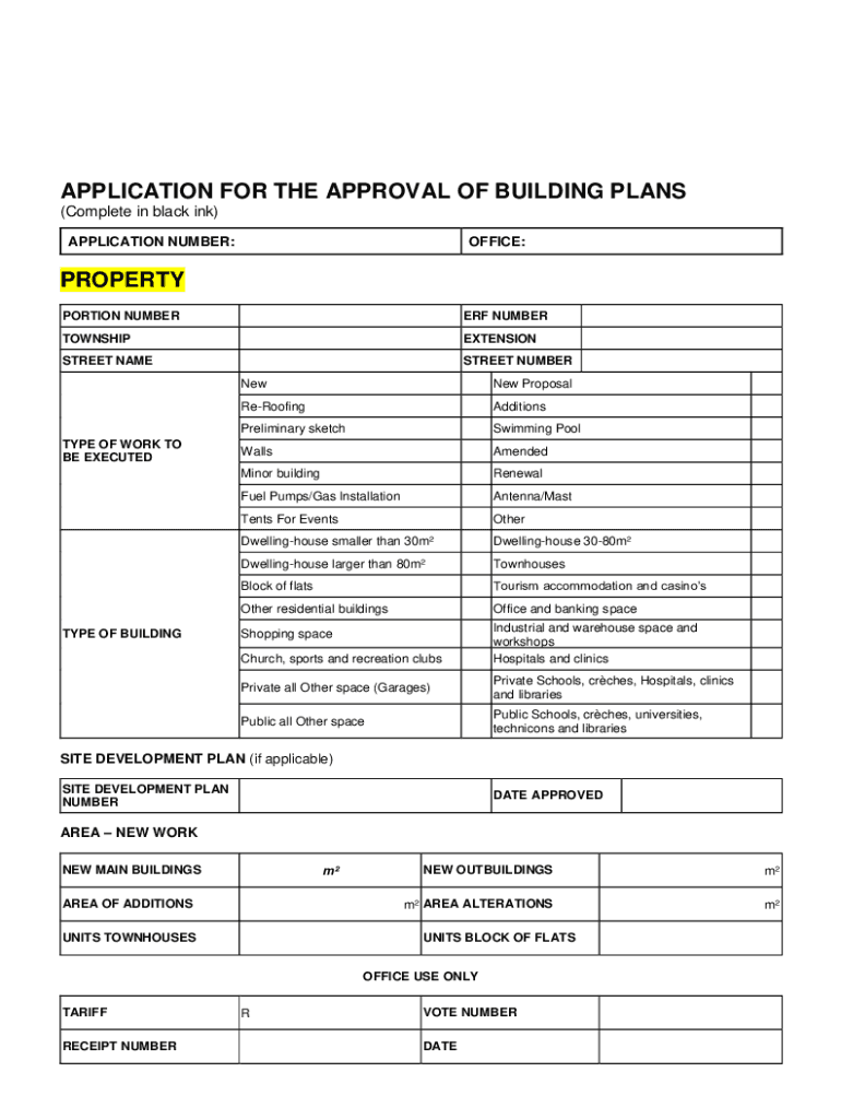 APPLICATION FOR THE APPROVAL OF BUILDING PLANS