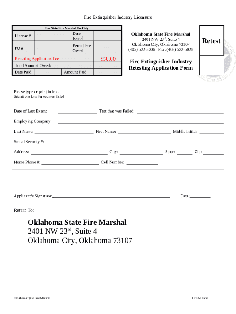 Office of the State Fire Marshal - Licensing - Oklahoma.gov template instructions