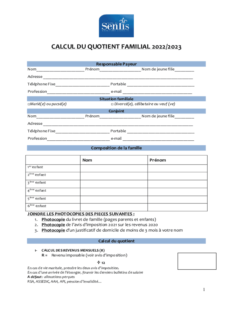 CALCULI DU QUOTIENT FAMILIAL 2022/2023